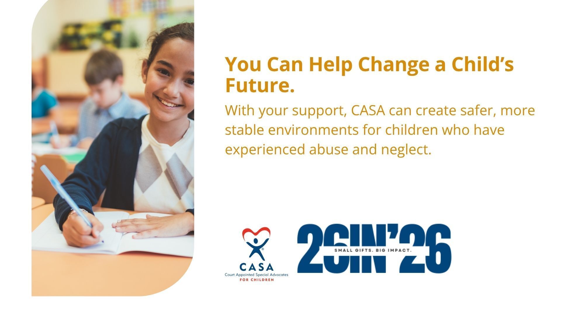 Give $26 each month in 2026 and help a child who has faced abuse or neglect have a voice in court.