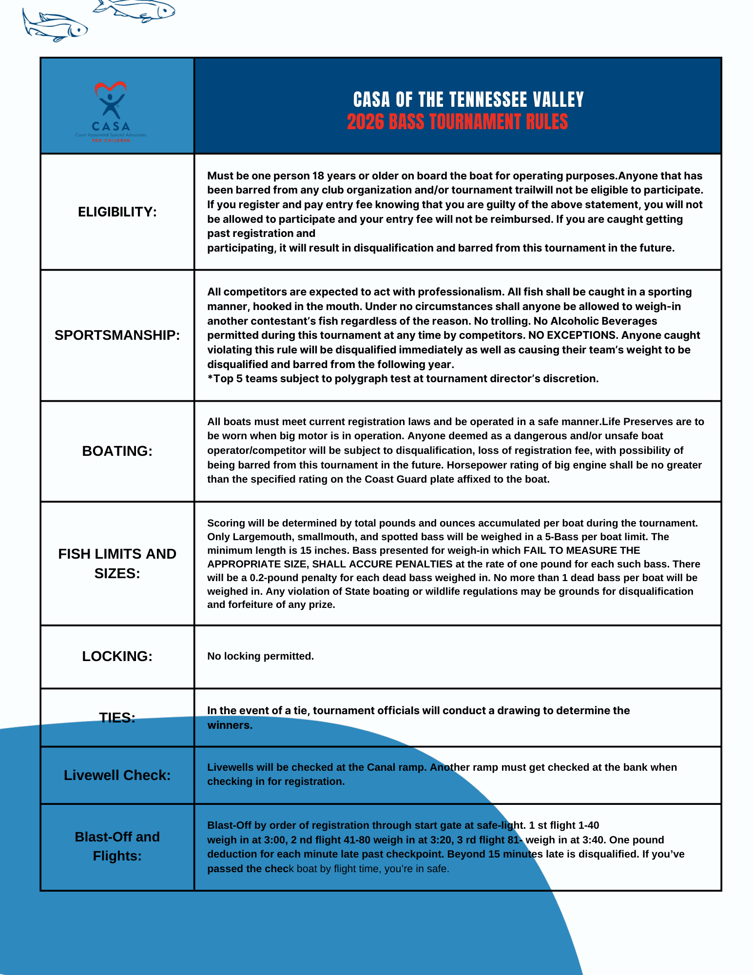 Register now to join our 2026 Bass Tournament at Canal Ramp on Fort Loudoun / Tellico Lake on April 11th. Blast-off will be at safe light.
